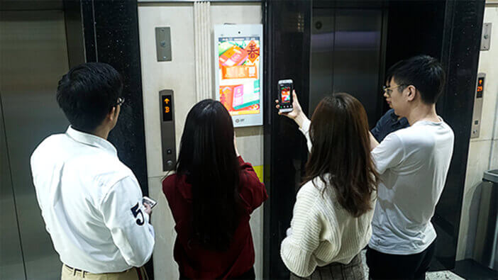 淘屏智能终端分布在住宅区、写字楼、商圈等场景,主要安装在电梯轿厢内和侯梯口,相对封闭环境内,终端声画显示强制用户观看“广告”,抢占用户心智。